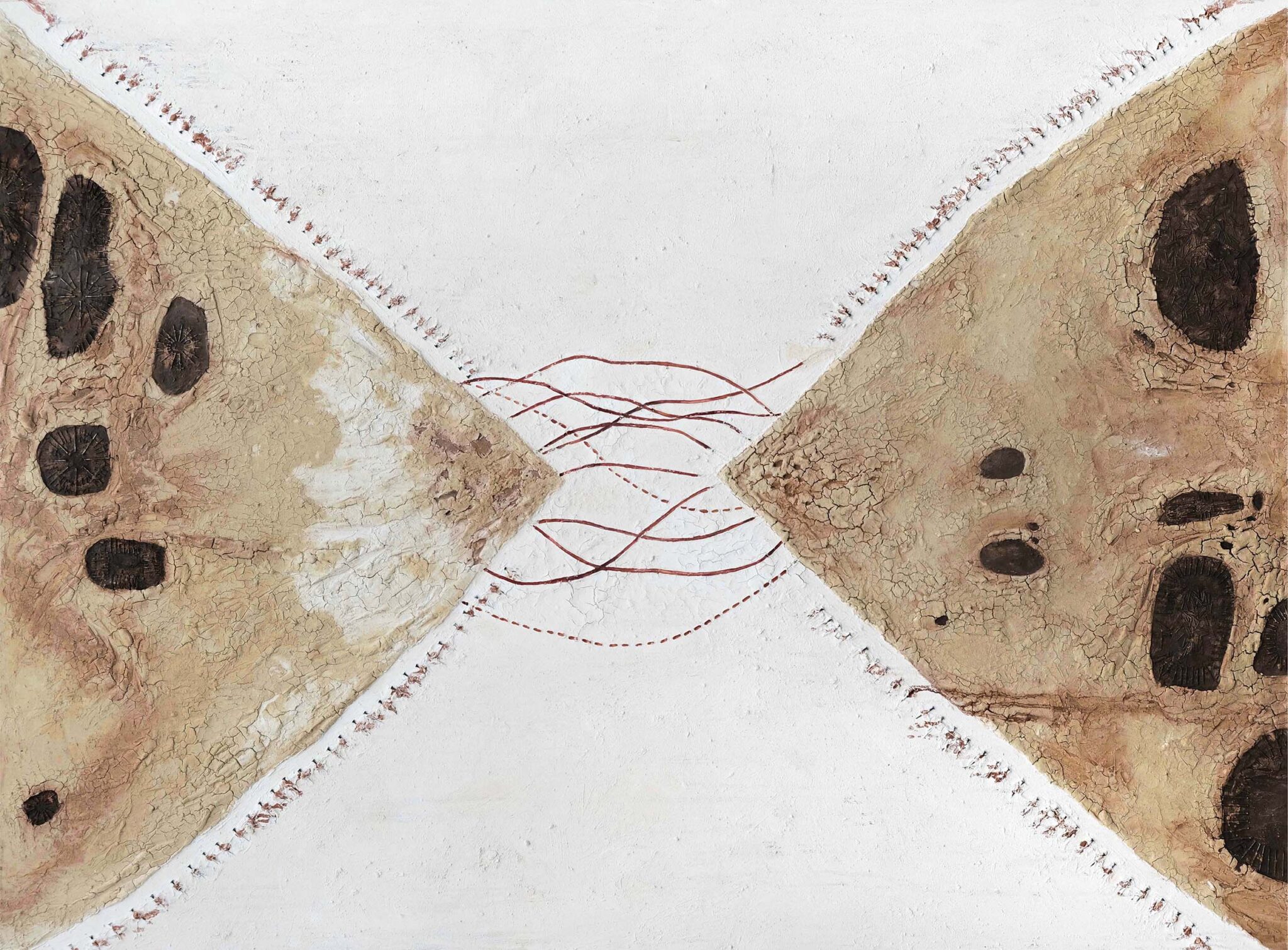 Material : Mixed media (mother-of-pearl, acrylic, chalk, plasters and clay) on canvas